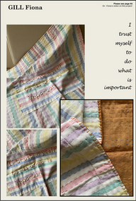 Each member was sent a selection of materials and suggested starting points, fabric and threads, together with project notes and access to an online workshop video. The work in this exhibition shows the vast range of individual research, thought, focus and experimentation undertaken by our members. It should be seen as WORK IN PROGRESS and none of the work is for sale.